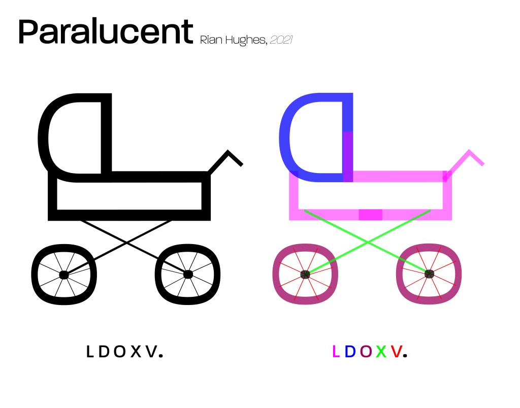 For Oh, Baby!, I wanted to challenge myself by limiting available tools. Everything in this project is made entirely out of Paralucent font, and none of the text is altered other than rotation; no stretching, no squashing.