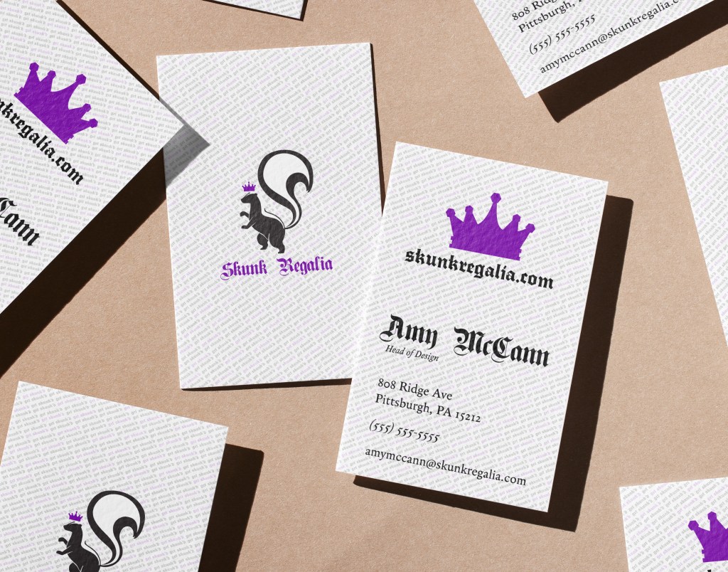 The regalia part of the name is to add to the joke-y name. Regalia are emblems or insignia of royalty, like a crown or scepter. The skunk portion of the logo is placed in the same stance that is usually reserved for lions on a crest of arms. Essentially, taking filth and putting it in a place of prominence.