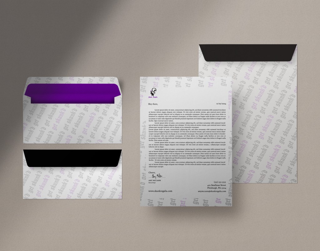 I wanted to have something that nodded towards the clothing fibers and to also have some kind of reference to queer culture. The skunk acts as a double-whammy for this idea. Skunk spray and marijuana smells are (allegedly) easy to confuse with the other. The term skunk can also be used to refer to any cannabis that has a high level of THC.