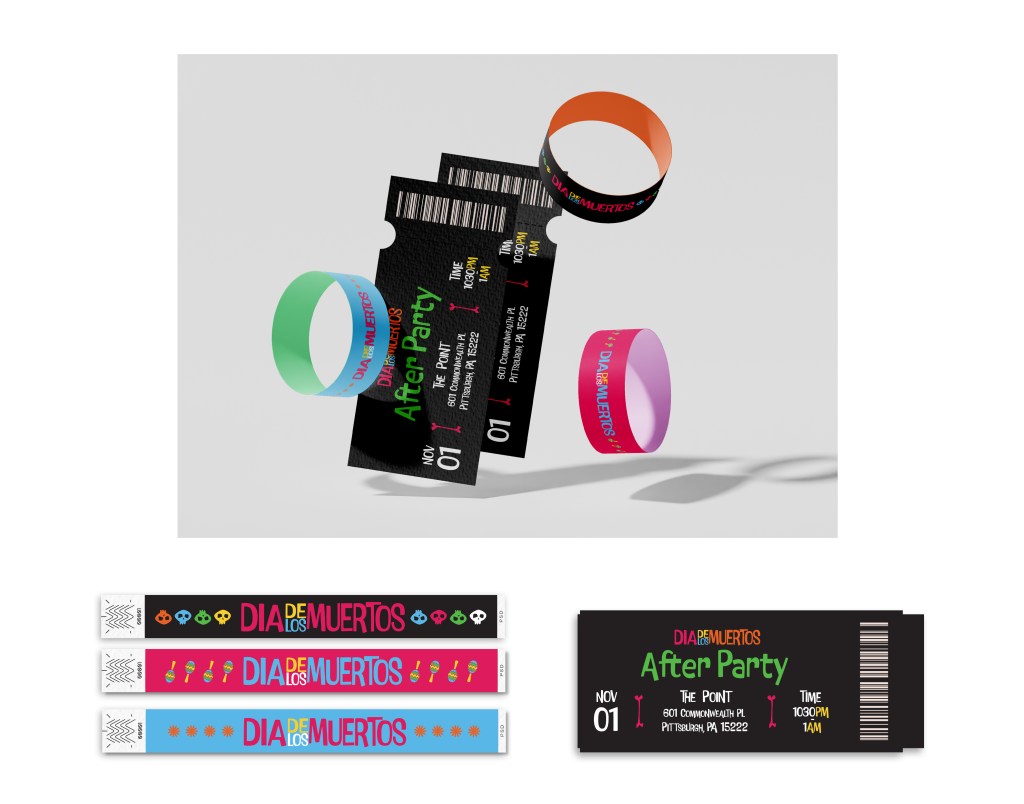 The event is to take place at Point State Park, “the Point” to locals, in downtown Pittsburgh. While the main event is free and for all ages, I included a paid after party later in the evening for 21+ people. The wristbands also act as a visual shorthand for age gated areas (pink for under 18, blue for over 18, and black for 21+).